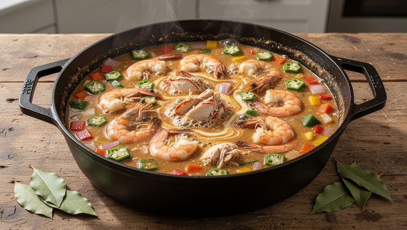 Seafood gumbo stars fresh shrimp and lump crab. Trinity veggies build the base. Broth from seafood stock keeps it light yet bold. Add shellfish late to stay tender.
